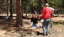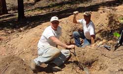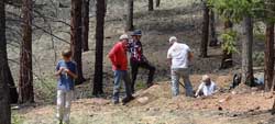 We had a great time with the LGGM Club at their Wigwam Creek claim. The weather was in the 70's and partly cloudy on this afternoon in May. John got everyone onsite and let them find a digging spot. After some fun everyone checked-in with some nice florite and some smokeys. |